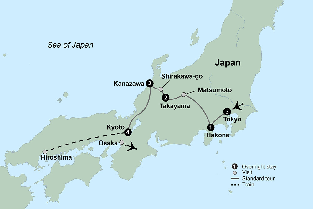 - Visit multiple UNESCO sites including Shirakawa-go, Nijo Castle, Itsukushima Shinto Shrine and Hiroshima Peace Memorial.