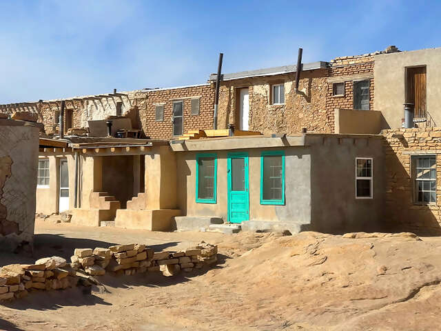 This morning, depart Santa Fe and make your way to the Sky City Cultural Center and the Acoma Pueblo — the oldest continuously inhabited settlement in North America. Perched atop a mesa, the village known as "Sky City" remains home to a vibrant community of Acoma people. Take a shuttle to the pueblo, where an Acoma community member will guide your tour. Wind through narrow streets lined with homes and ancient structures that tell the story of the Acoma Pueblo. Visit the Spanish mission church, the oldest surviving European church in New Mexico. At the Cultural Center, you’ll have the chance to browse intricate Acoma pottery sold by artisans. After your visit, continue to Chinle for an evening on your own.