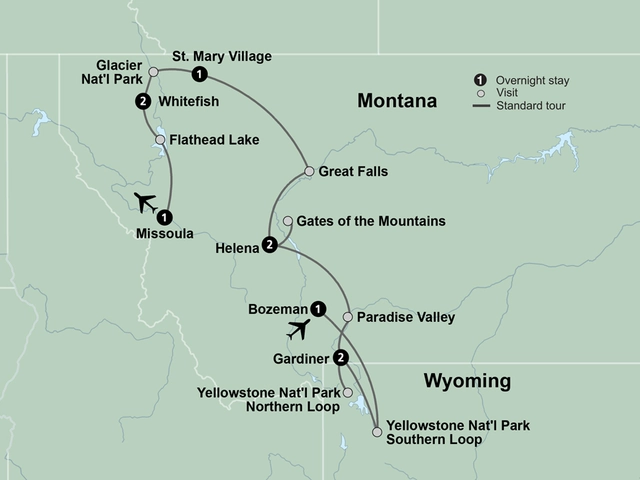 Step outside, take a deep breath in, and look towards the mountains - you’re in the big sky country of Montana, now. Explore both the Northern and Southern Loops of Yellowstone National Park, and visit Old Faithful, Mammoth Hot Springs, Yellowstone’s Grand Canyon, and more. Venture to Helena, the “Queen City of the Rockies.” Cruise on the Missouri River through the Gates of the Mountains, named by legendary explorers Lewis and Clark. Spend time in the mountain town of St. Mary Village before heading in to explore Glacier National Park. Take an adventurous white water rafting trip or a calm, scenic float down the Flathead River. Meet a descendant of the last Kootenai chief and learn about the importance of the land in native life. Get a glimpse into the heroic and dangerous life of a Smokejumper. A land of wilderness, adventure, and beauty, Montana is waiting for you.