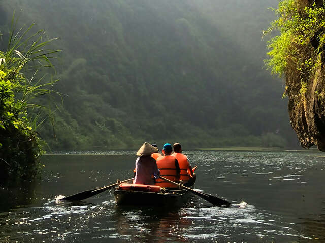 This morning, step into a rowboat and glide through the serene waterways of Trang An, a UNESCO World Heritage Site known for its labyrinth of limestone caves and jungle-covered peaks. As you paddle through Bright Cave, Dark Cave, Ba Giot, and Nau Ruou, the quiet beauty of this hidden world unfolds around you. This evening, connect with locals over a home-hosted dinner that begins with a visit to the market for fresh ingredients and continues with a hands-on cooking class before sharing the meal together.