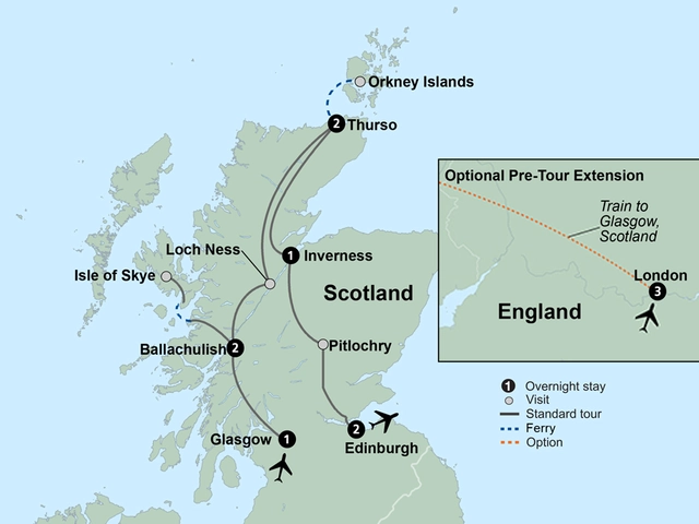 Arrive in Glasgow, Scotland’s Victorian city. With no planned activities today, you can explore Glasgow at leisure. Tonight, your Scottish adventure begins with a visit to a local restaurant. After experiencing a piping demonstration and lesson with a renowned piper, join your fellow travelers for a lively welcome dinner at the restaurant.