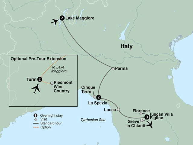 Experience the romance of Italy's lakes region, the colorful coast of the Italian Riviera, and the rolling hills of Tuscany.