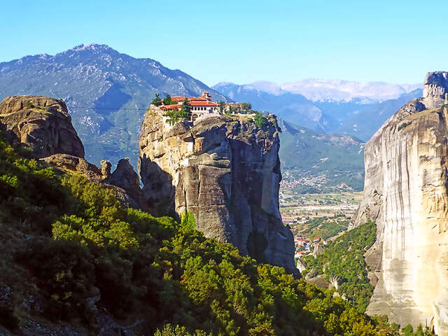 Travel north through central Greece to Thermopylae. Stop to see a monument dedicated to Leonidas who died defending the city against the Persians. Arrive in Metéora and visit two remote monasteries* situated in a unique landscape of limestone rock “towers” that extend nearly 900 feet into the air. Over 600 years ago, Byzantine monks chose to build their monastic community perched atop these virtually inaccessible rocks. End your day at a family-owned taverna where you will savor a delicious meal with recipes passed down from generations.